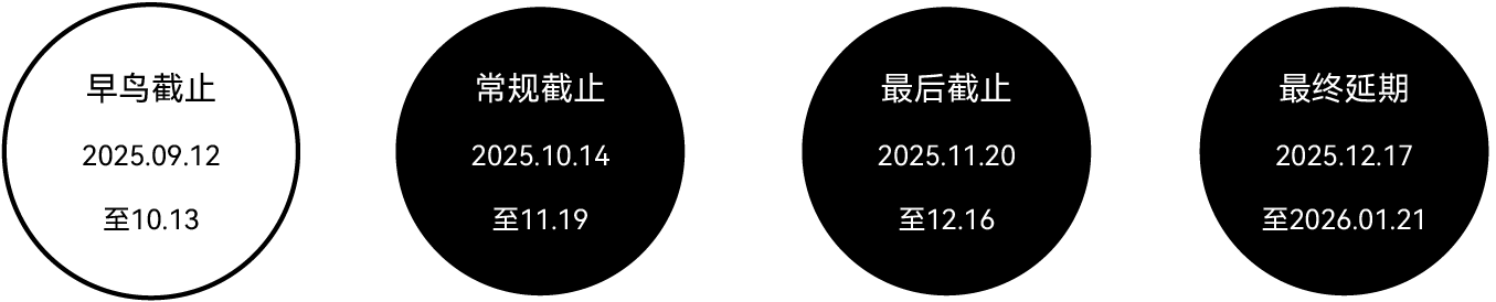 a. 早鸟截止 | 1888元人民币/套+ 980元报奖费/套,1 套共2868元人民币b. 常规截止 | 1988元人民币/套+ 980元报奖费/套,1 套共2968元人民币c. 最后截止 | 2188元人民币/套+ 980元报奖费/套,1 套共3168元人民币