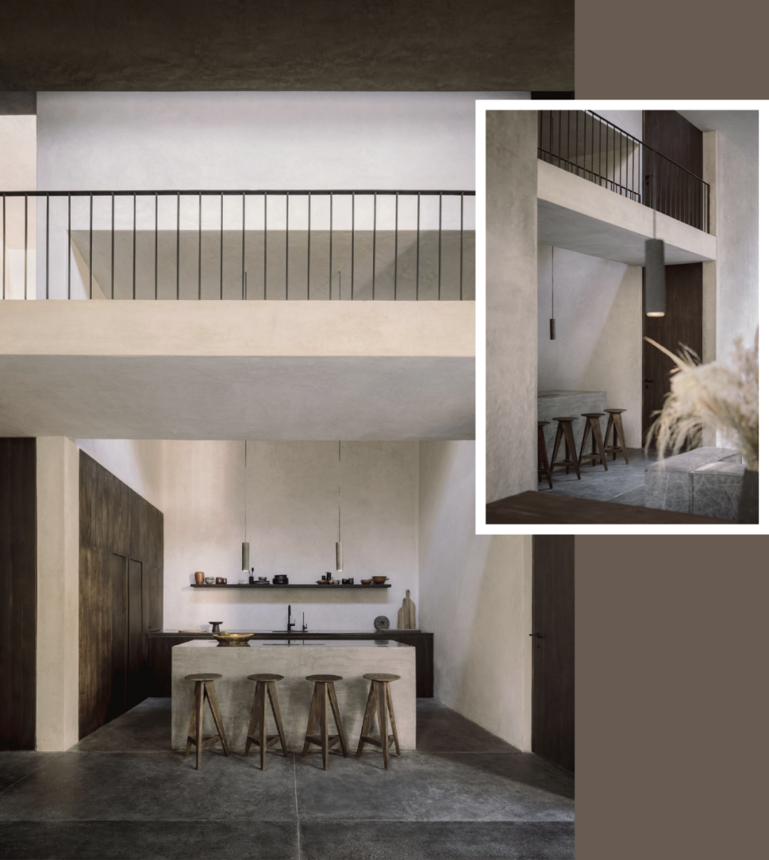 温暖的灰色手工抛光水泥饰面覆盖在混凝土墙上,与现场定制的黑色水磨石地板形成鲜明对比,为朴实的色调增添了丰富和深度。空间内饰采用手工装饰,烧焦的雪松与整个住宅的中性色调相得益彰,在现场还可感到凉爽的微风流过Aviv house。