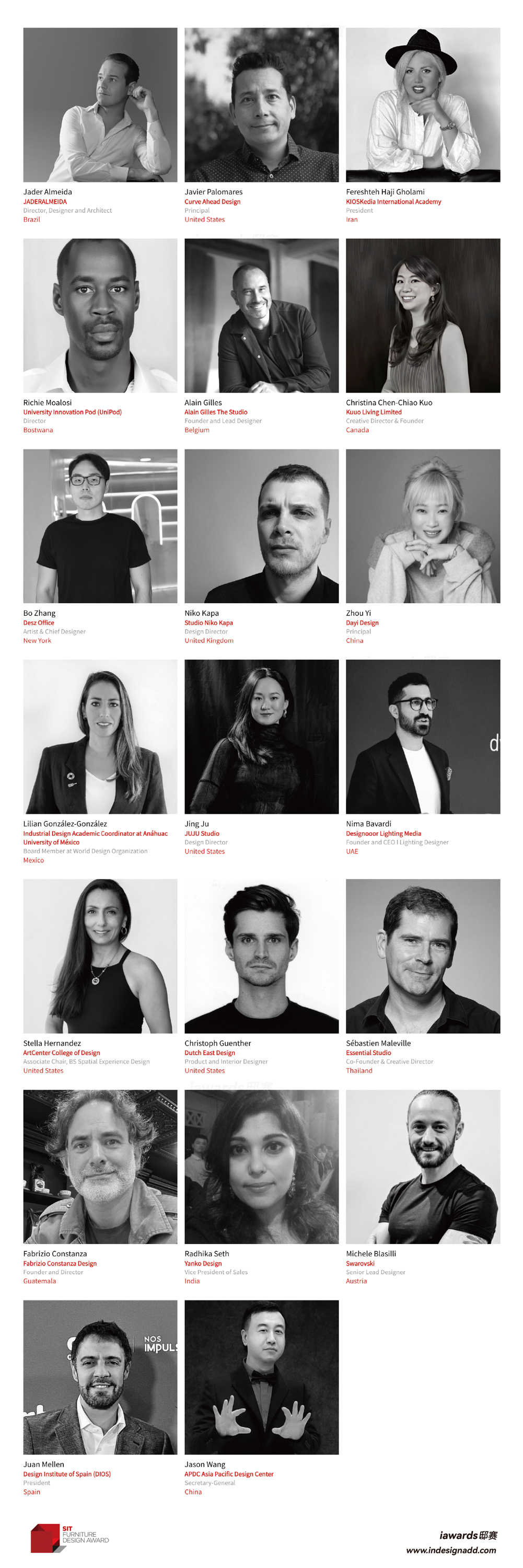 SIT Furniture Design Award(SIT家具设计奖)的获奖者将由受人尊敬的工业设计师、业界创意人士与领导者组成的评审团选出,评审团的每一位才华横溢的评审都是其组织以及领域的领导者,有抱负的持续为工业设计界提供贡献与回馈,以帮助寻找当今最具备远见卓识的设计和设计师。
